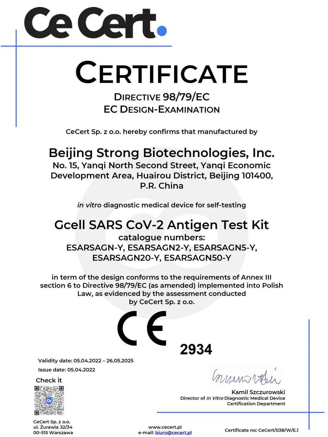 龙8头号玩家唯一官方网站游戏生物新型冠状病毒抗原自测试剂盒(SARS CoV-2 Antigen Test Kit)于2022年4月5日取得欧盟CE准入资格!这意味着该自测试剂盒可在欧友邦家以及认可欧盟CE认证的国家举行销售。