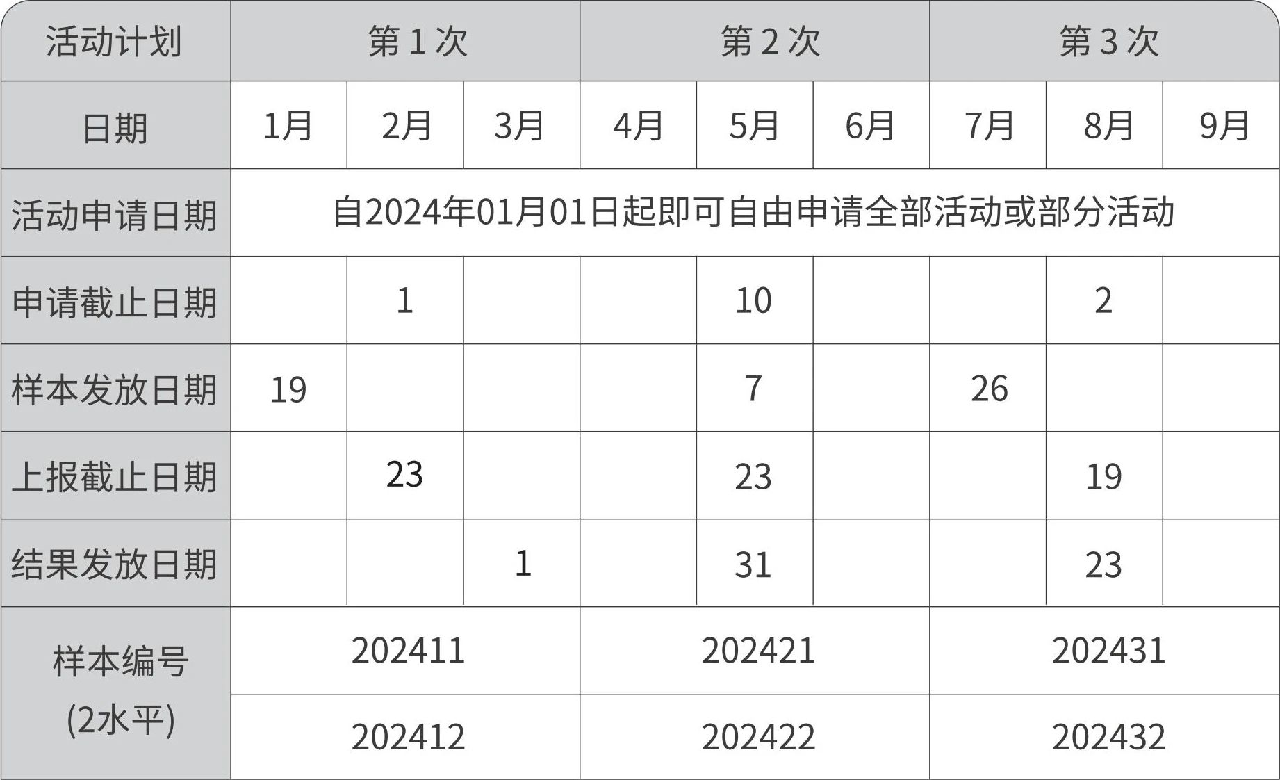 2024ÄêÁú8Í·ºÅÍæ¼ÒΨһ¹Ù·½ÍøÕ¾ÓÎÏ·ÉúÎïÖÊÁ¿ÆÀ¼ÛÍýÏëÕûÄ꿪չ3´Î£¬Ã¿ÏîÔ˶¯Ã¿´Î·¢·Å2¸öŨ¶ÈˮƽÑù±¾¸÷1Ö§¡£¿ªÕ¹µÄÔ˶¯¼°ÏîÄ¿ÏêϸÈçÏ£º