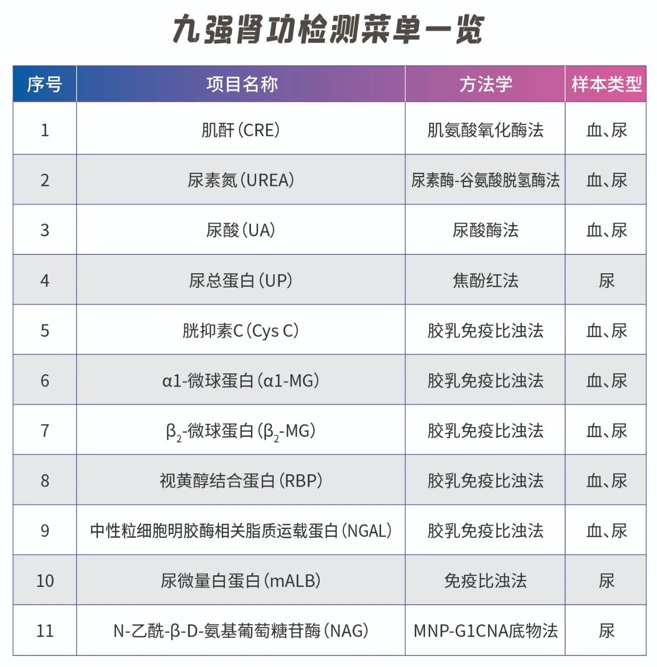 ͨÀýÏîÄ¿ÓÉÓÚ¶ÔÔçÆÚÉöËðÉËÃô¸ÐÐÔȱ·¦£¬ÔÚ·´Ó¦ÉöÔ๦ЧÉϳ£±£´æÒ»¶¨µÄÖͺóÐÔ£¬Òò´ËÐèҪһЩѸËٵļì²âÖ¸±ê£¬×ÊÖúÎÒÃÇÔÚÔçÆÚ·¢Ã÷ÉöÔàÒì³££¬ÒԱ㼰Ôç×îÏÈÖÎÁÆ¡£ë×ÒÖËØC£¨Cys C£©¡¢Êӻƴ¼ÍŽáÂѰף¨RBP£©¡¢¦Á1΢Á¿ÇòÂѰף¨¦Á1-MG£©¼°ÖÐÐÔÁ£Ï¸°ûÃ÷½ºÃ¸Ïà¹ØÖ¬ÖÊÔËÔØÂѰף¨NGAL£©ÕâЩָ±êÔÚ·´Ó¦ÔçÆÚÉöÔ๦ЧËðÉËÉÏÓÐÏÔ×ÅÓÅÊÆ¡£
