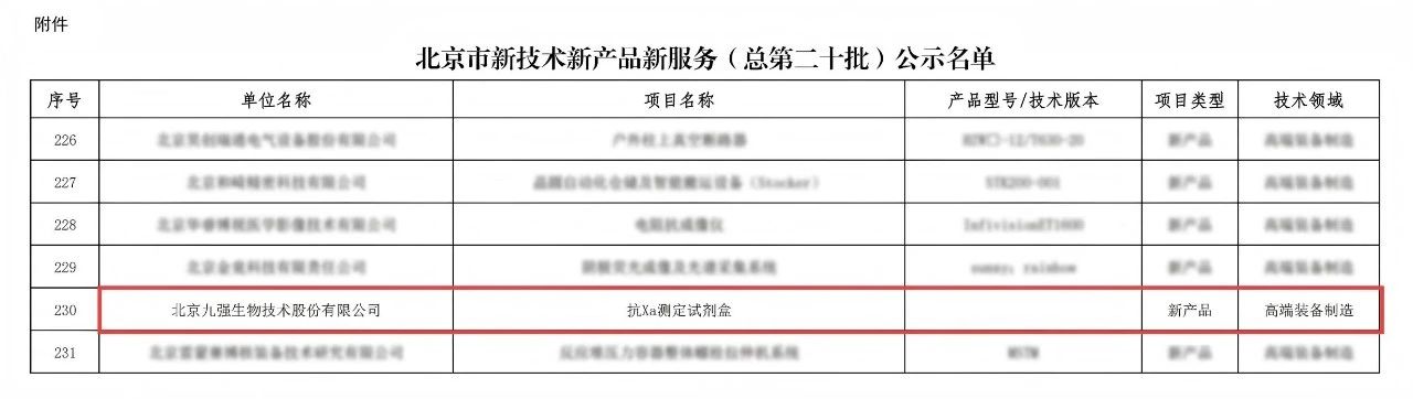 克日,北京市科学手艺委员会、中关村科技园区管理委员会正式宣布《北京市新手艺新产品新服务(总第二十批)公示名单》,龙8头号玩家唯一官方网站游戏生物抗Xa测定试剂盒乐成入选该名单!