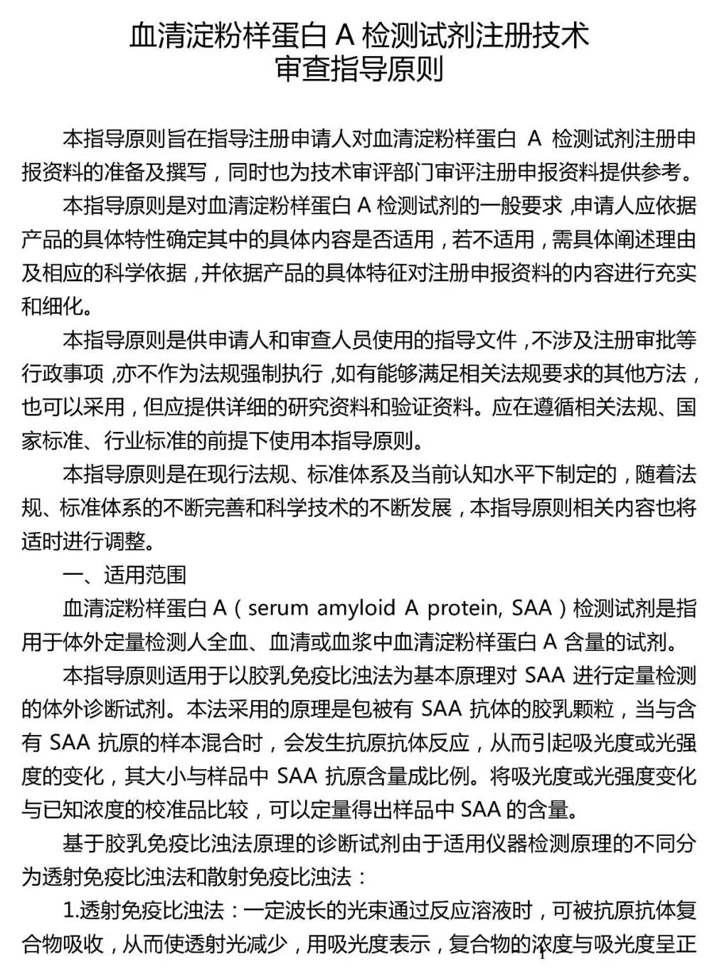 血清淀粉样卵白A检测试剂注册手艺审查指导原则